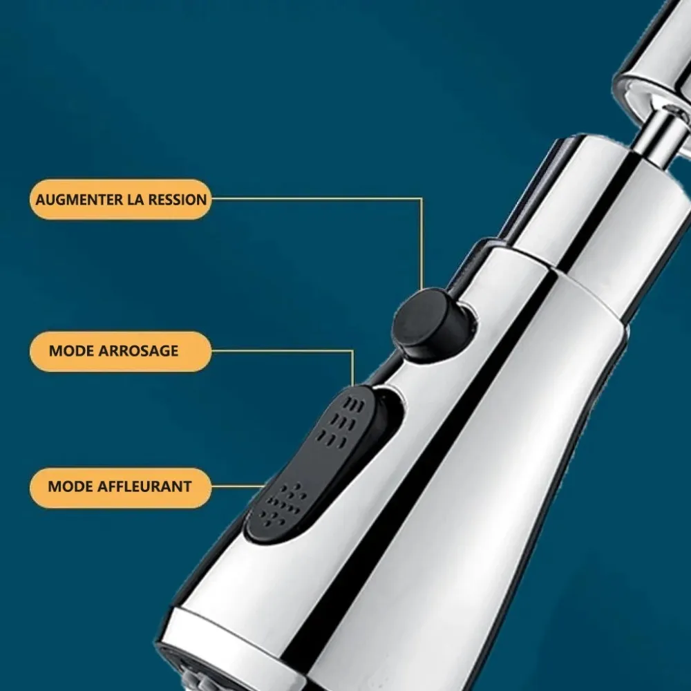 🔥Nouvelle Arrivée-Rotatif à 360 ° -3 fonctions Buse de Robinet Universelle sous Pression